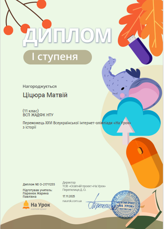 - Матвій Ціцюра (2ТТ-1151) – диплом І ступеня