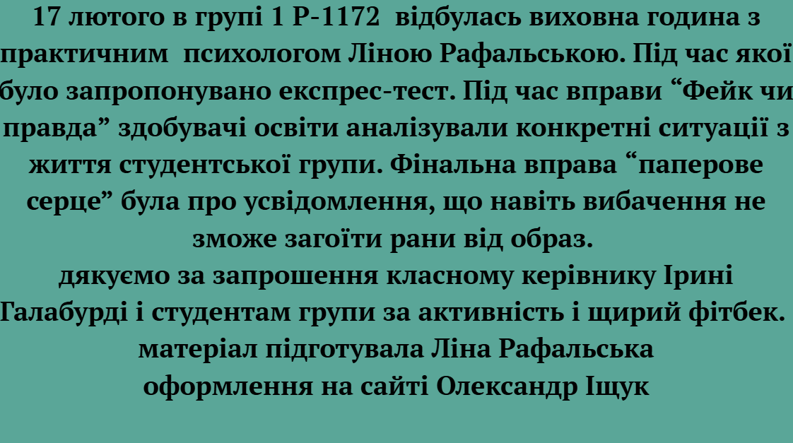 Класна година в групі 1Р-1170 на тему «Академічна доброчесність як важливий фактор якості освітньої діяльності»