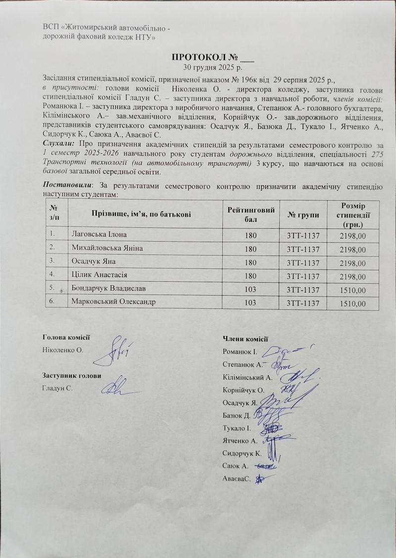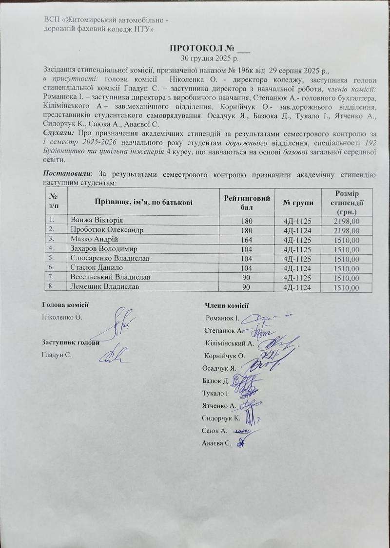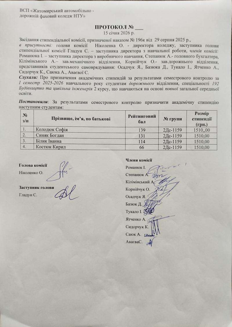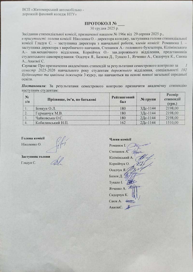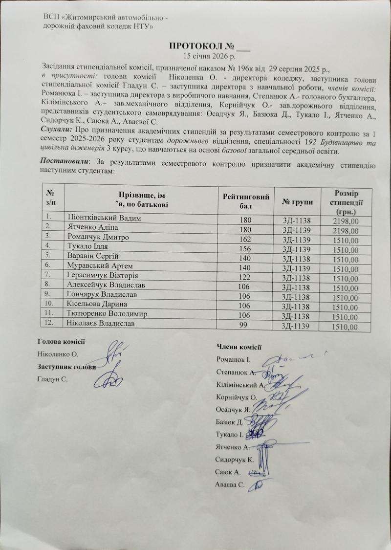 Результати рейтингового контролю та рішення стипендіальної комісії 2025-2026 н.р.