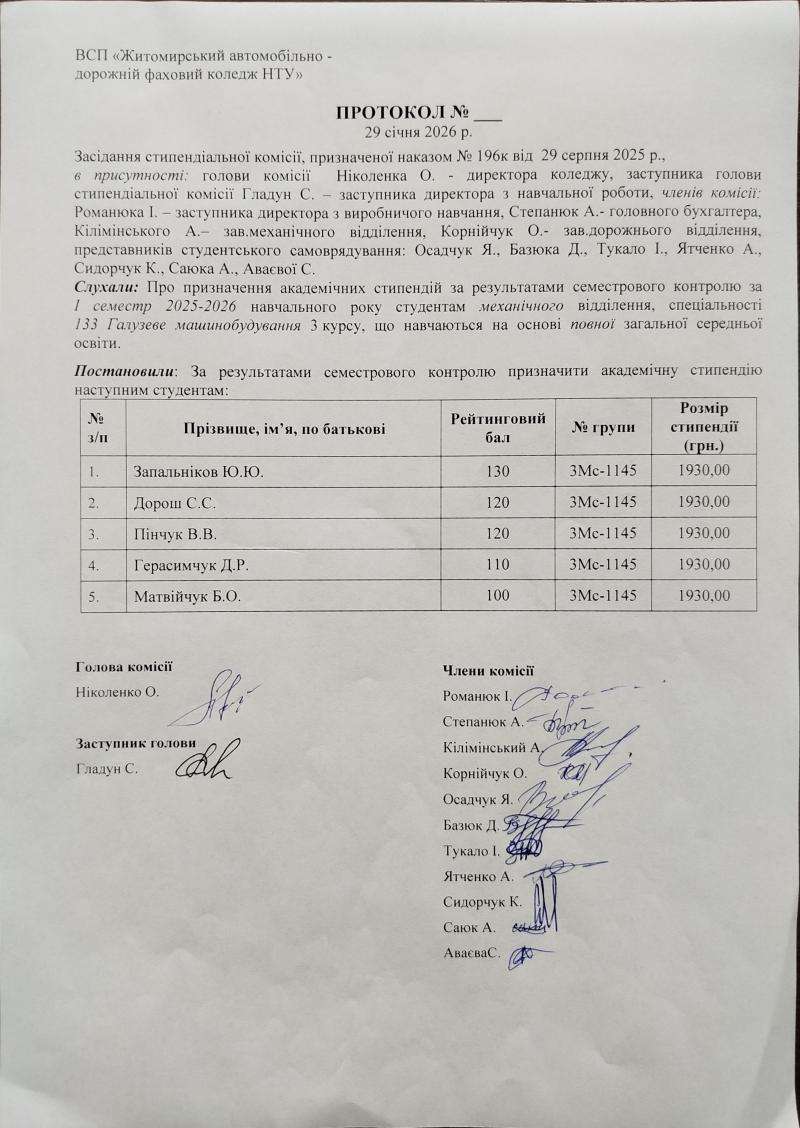Результати рейтингового контролю та рішення стипендіальної комісії 2025-2026 н.р.
